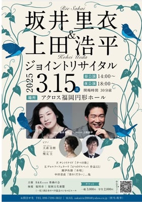 出演:坂井里衣(ソプラノ) 上田浩平(テノール) 大森美樹(ピアノ) 榎元 圭(ピアノ)