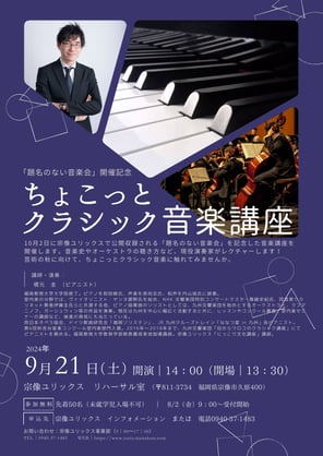 10月2日に宗像ユリックスで公開収録される「題名のない音楽会」を記念した音楽講座。