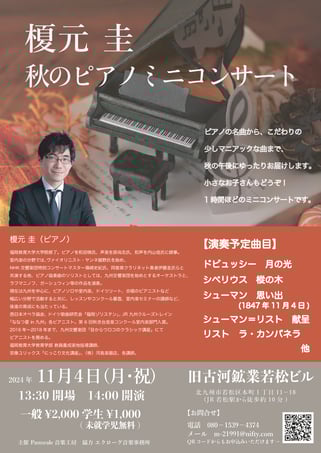 榎元 圭 秋のピアノミニコンサート ←チケットは完売いたしました!ありがとうございます♬