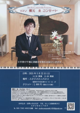 榎元 圭 ピアノリサイタル ←チケットは完売いたしました!ありがとうございます♬